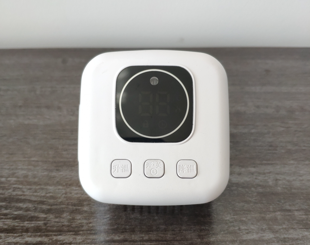 - 定时设置:开机状态下,按下“开关”键,定时指示灯亮,显示定时时间并闪烁,按“升温”+“降温”键调整定时时间,按“开关”键返回,无操作5S自动确认。(定时时间范围1-24,单位小时,默认5)在定时状态下,按“开关”键,定时指示熄灭,定是取消。