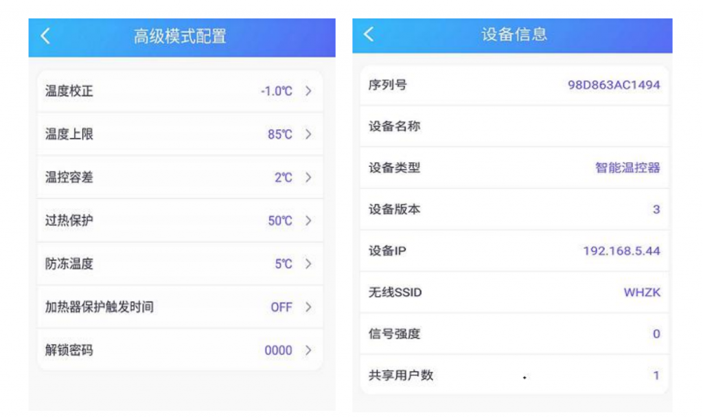 高级模式建议在售后技术指导下修改设定 显示设备的信息