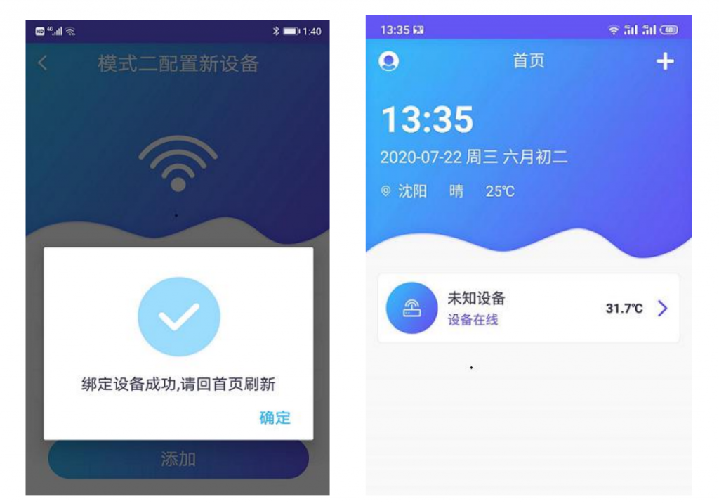 点击“确定” 返回设备列表 成功添加新设备,温控器 WIFI 图标停止闪烁